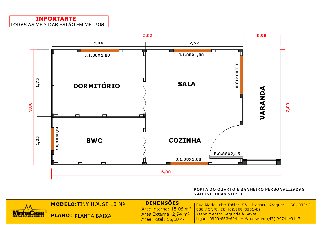 Seu KIT TINY HOUSE (18M²) inclui: